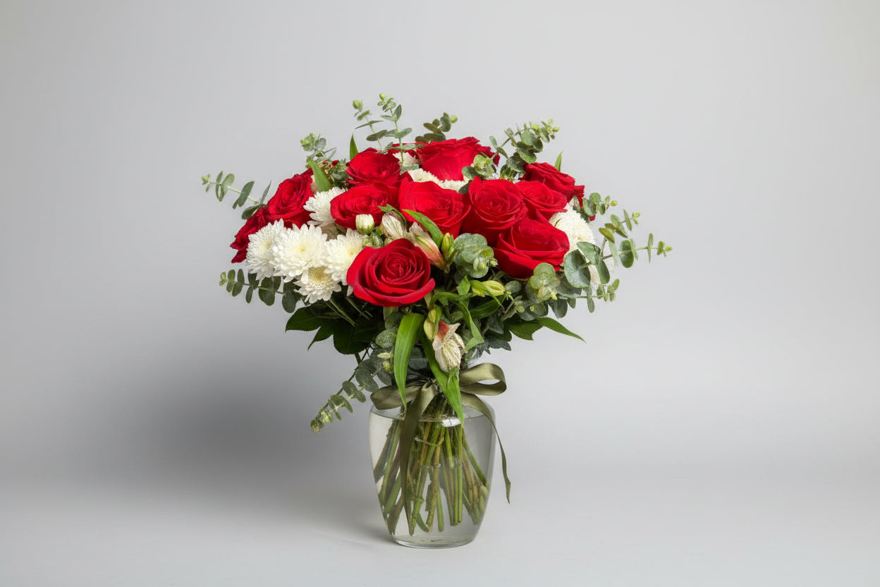 Florero rosas rojas